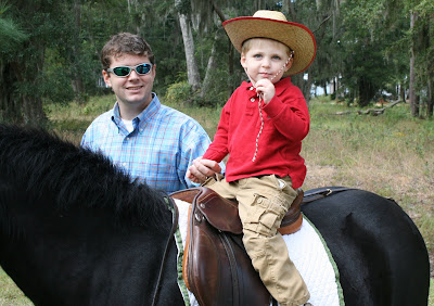 We went to Emma Claire's friend James' first birthday party on Saturday, and both Grayson and Emma Claire got to experience their first pony ride (if you can call EC's a "ride"---really just sitting unhappily on the pony's back while mommy snapped a few pictures). James' mommy, Lillian, did an awesome job with the party---it was cowboy-themed, and there were all kinds of cute touches like cowboy hats for all of the children, bales of hay scattered around the yard, and even a little baby pool filled with dried corn for the children to play in. The kiddos (and the adults!) had a blast. Happy birthday, James! We had a great time! :)